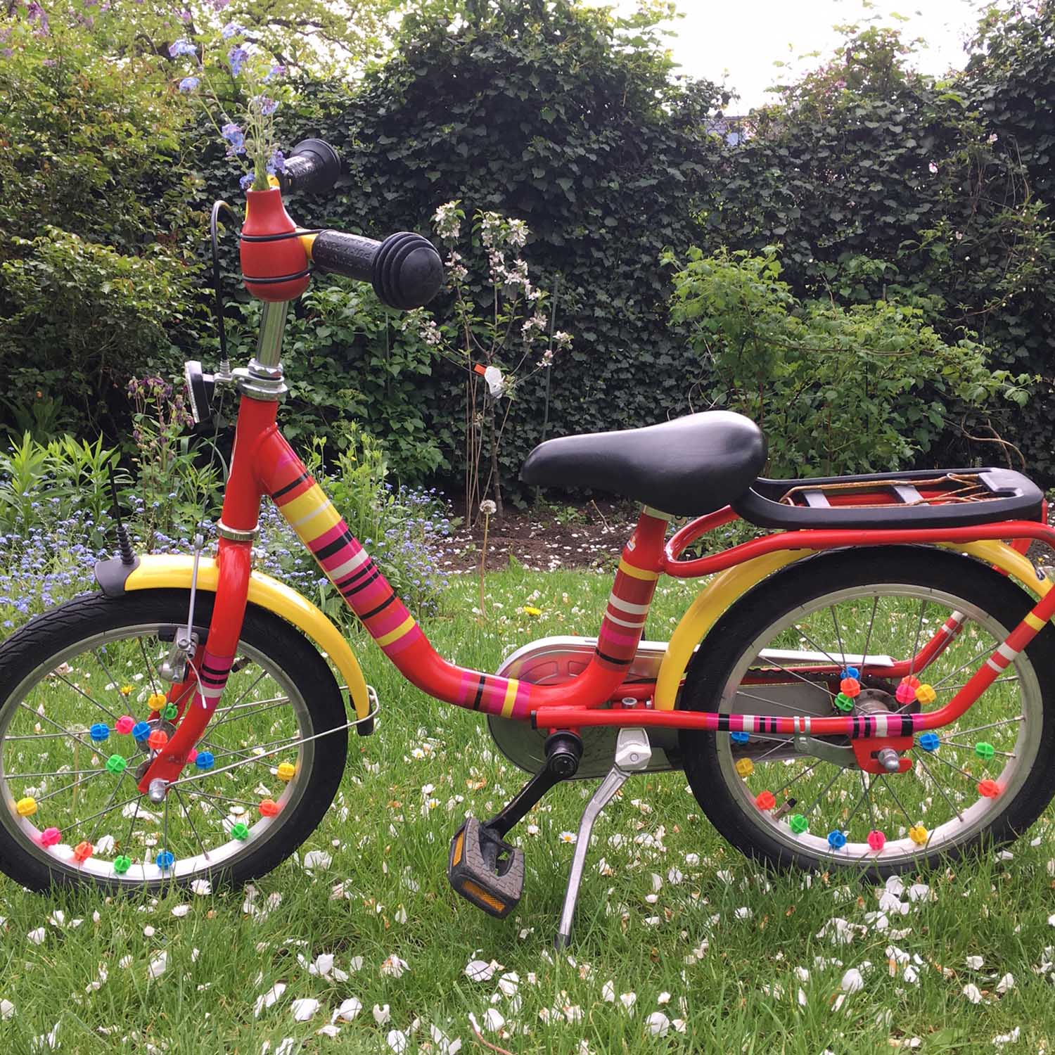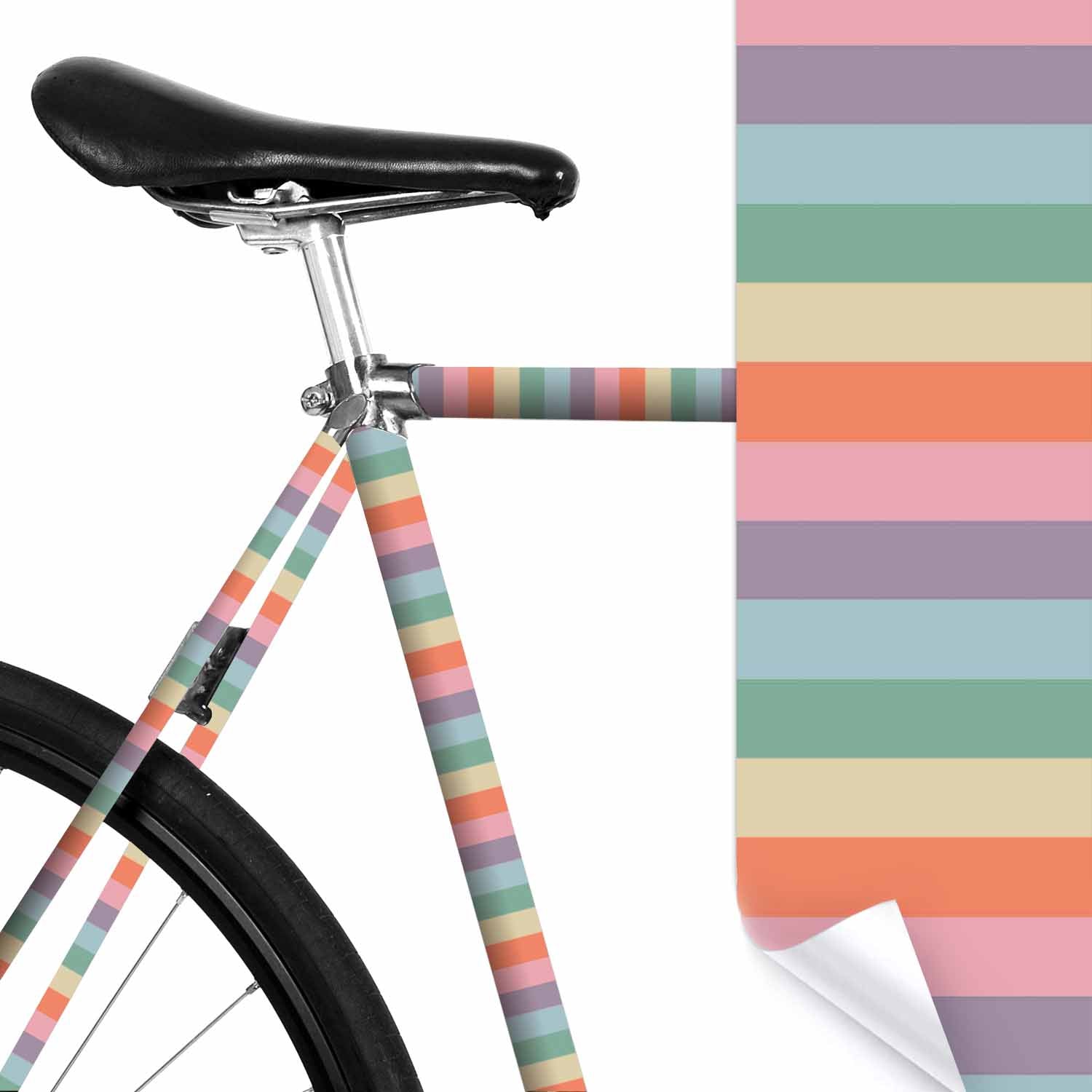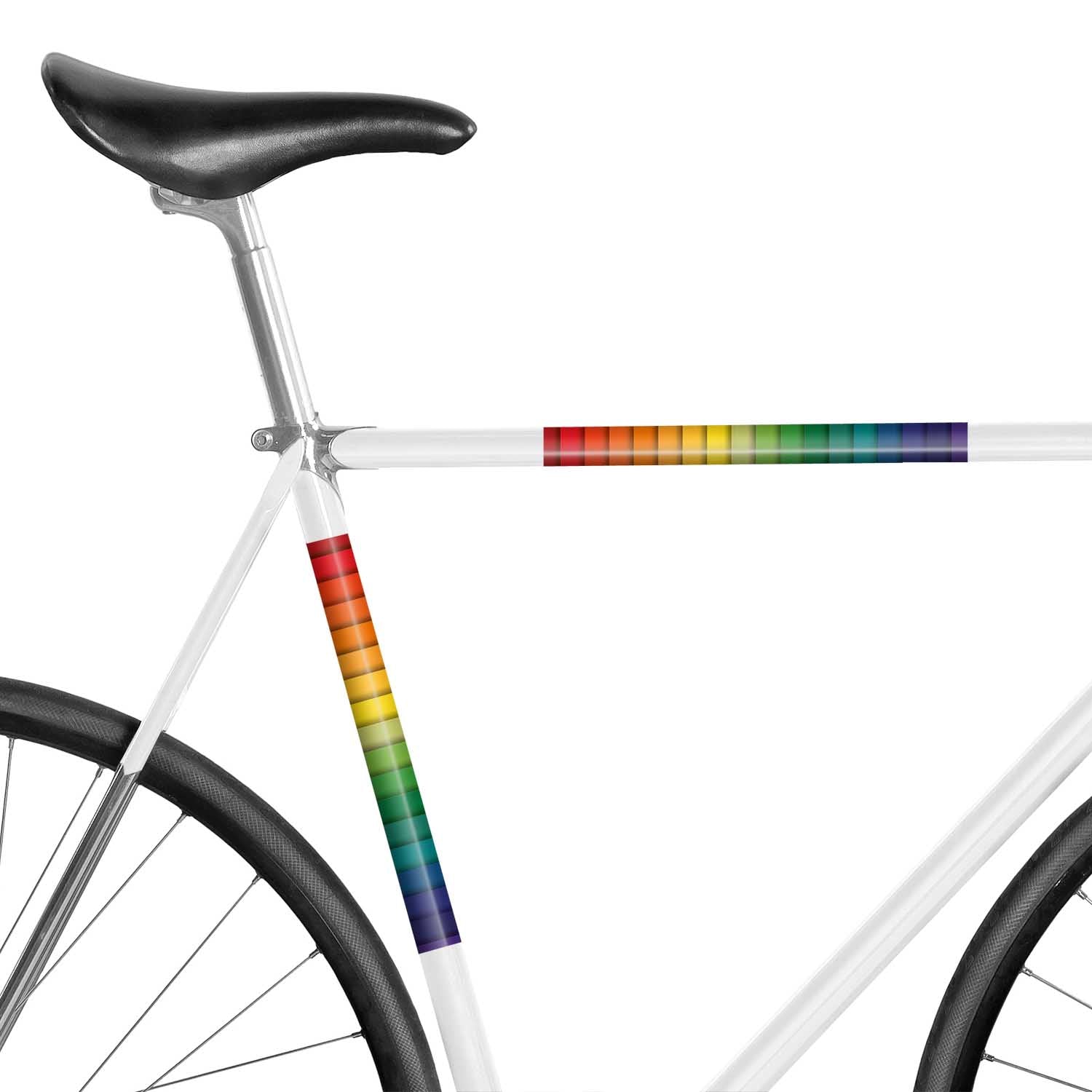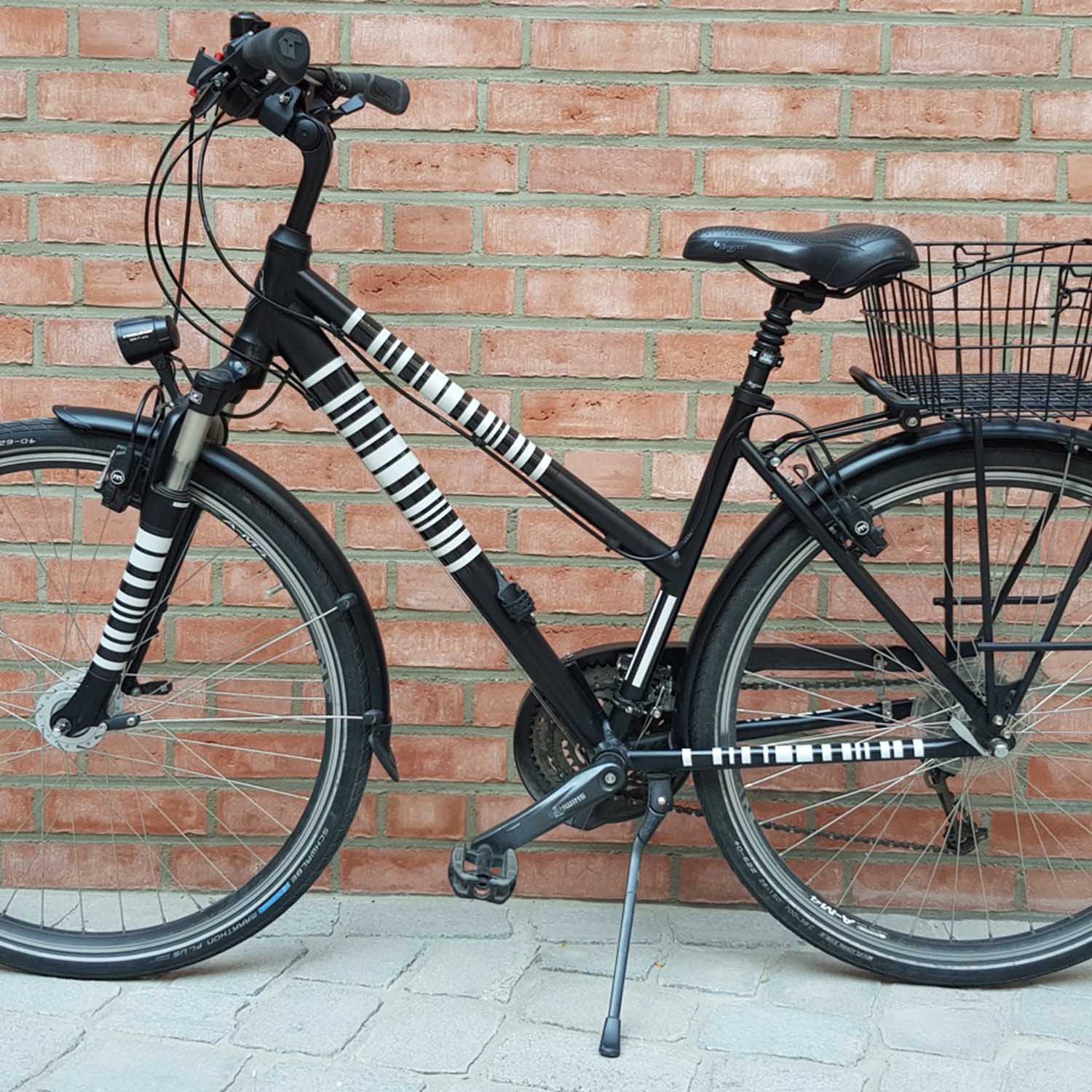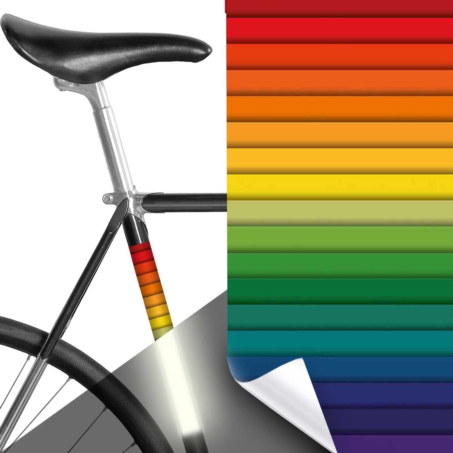 With little effort, you can redesign your bike: with color-coordinated stripes, a knitted pattern or a rainbow motif. These bike stickers enhance any bike and are also reflective at night. This way, you can customize your bike and increase visibility.
