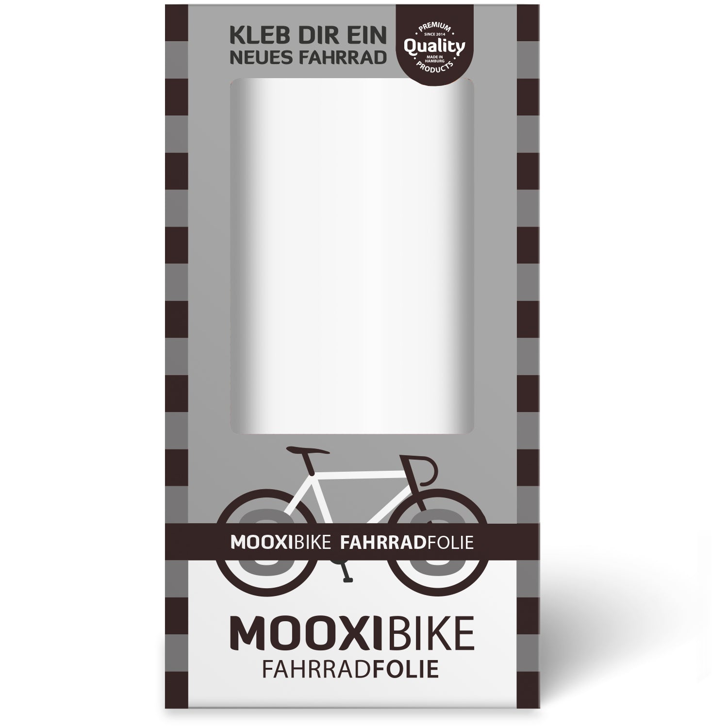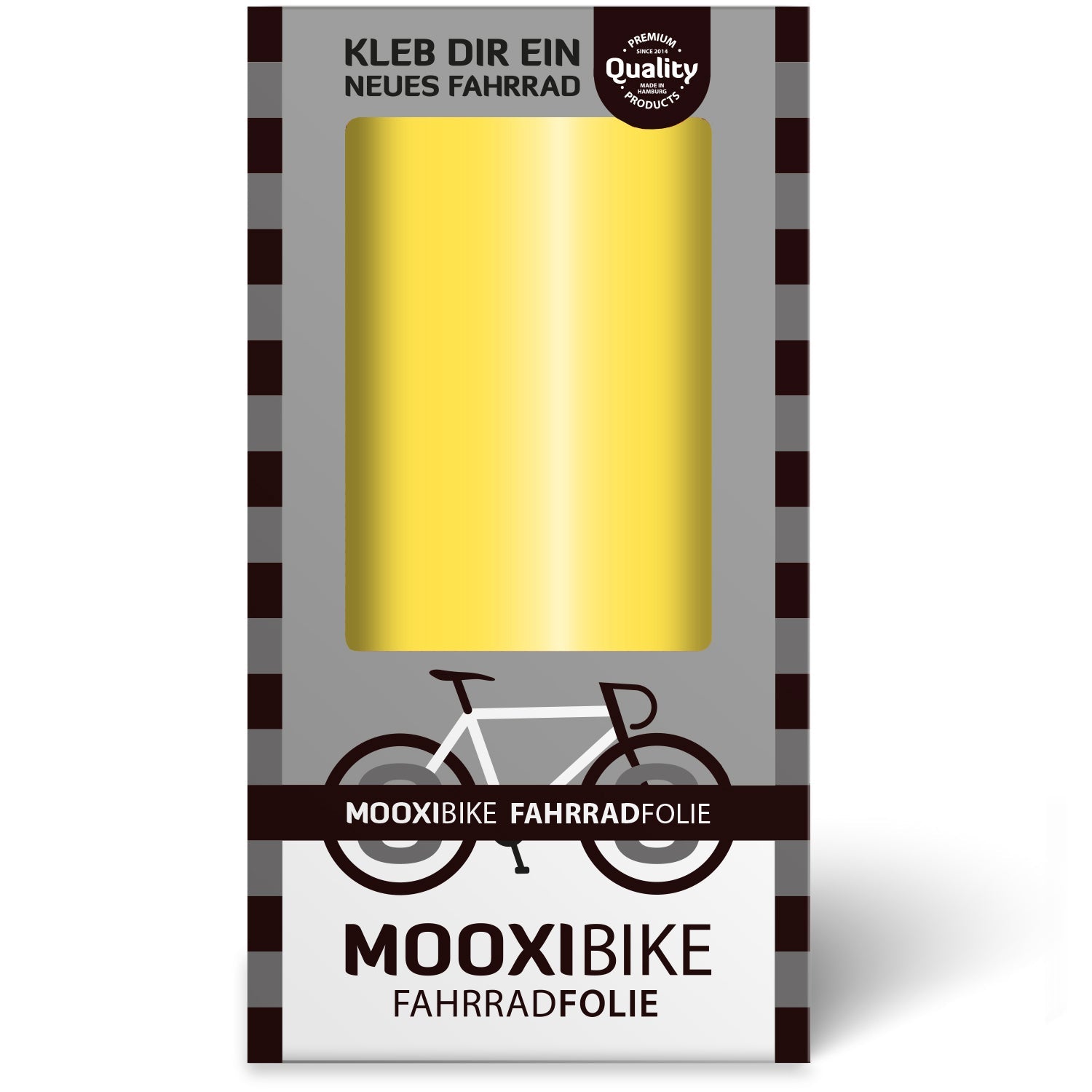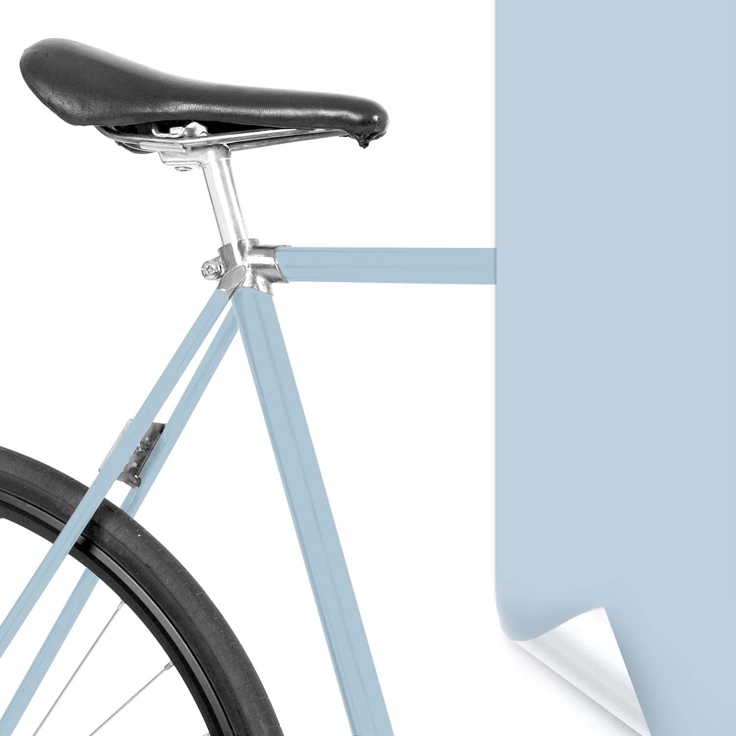 Wrapping a bicycle frame with a single-colour gloss film is one way to give a bicycle a glossy surface. It is a cost-effective alternative to painting and has the advantage that the original paintwork is retained, meaning the bicycle can be returned to its original condition if it is later sold or dismantled.