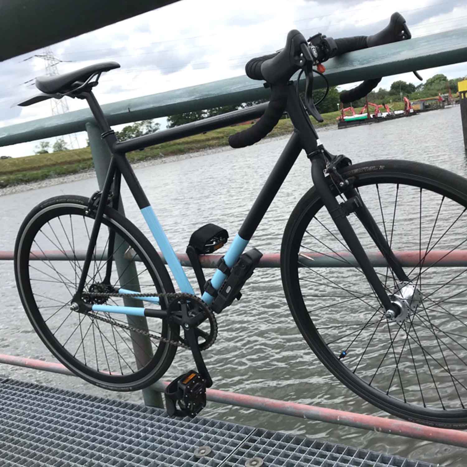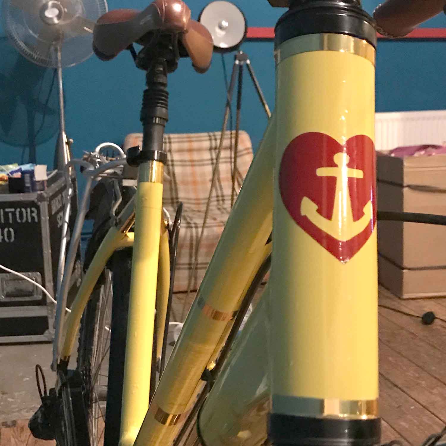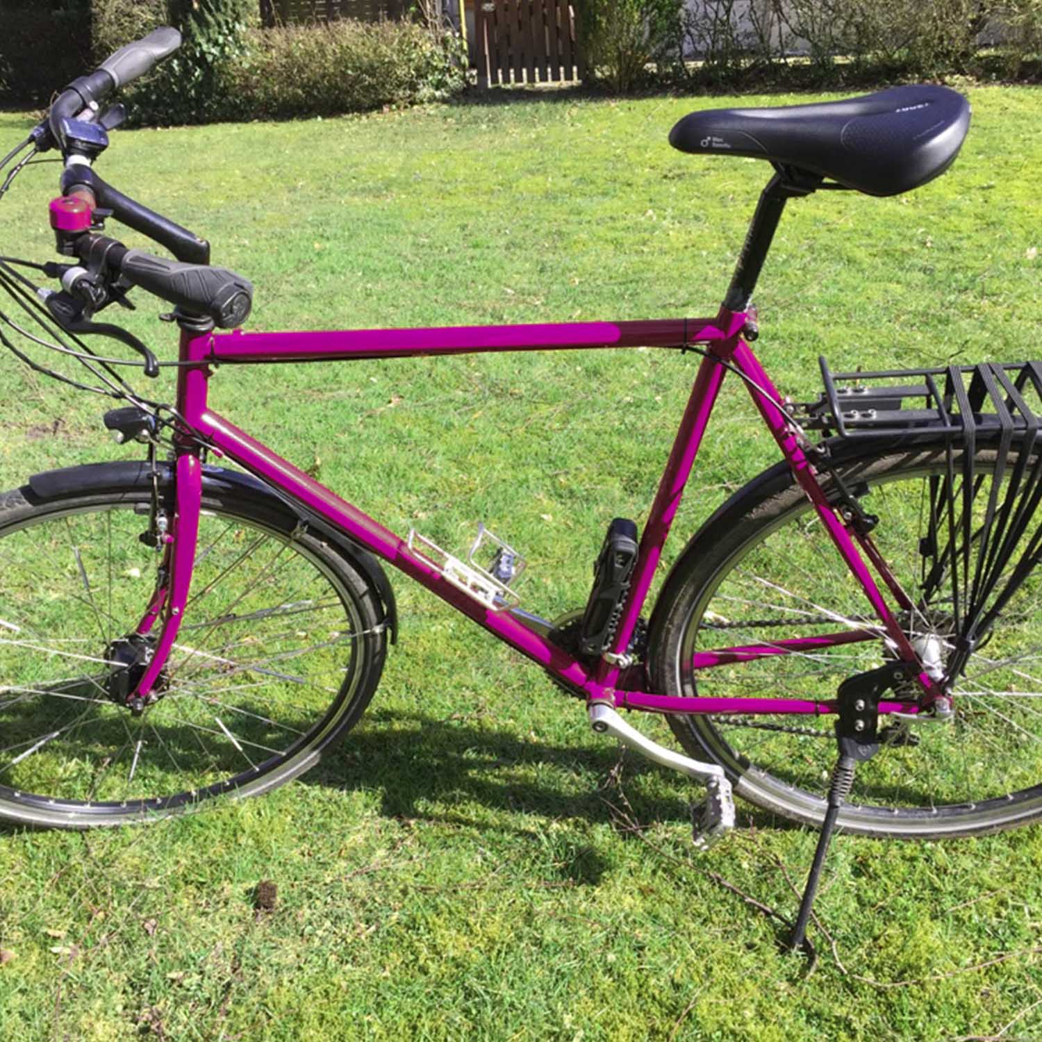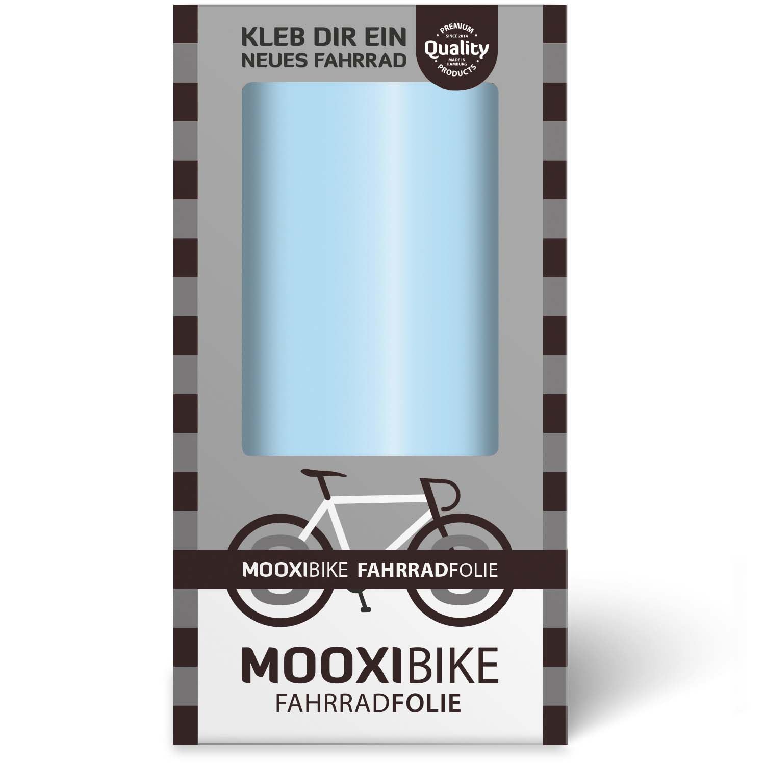 Wrapping a bicycle frame with a single-colour gloss film is one way to give a bicycle a glossy surface. It is a cost-effective alternative to painting and has the advantage that the original paintwork is retained, meaning the bicycle can be returned to its original condition if it is later sold or dismantled.