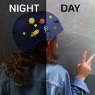 Garantierte Aufmerksamkeit durch die reflektierenden Aufkleber: das Licht der Autoscheinwerfer wird von den Stickern direkt zum Autofahrer zurückgeworfen und so wirst du „sichtbarer“ im Dunkeln.