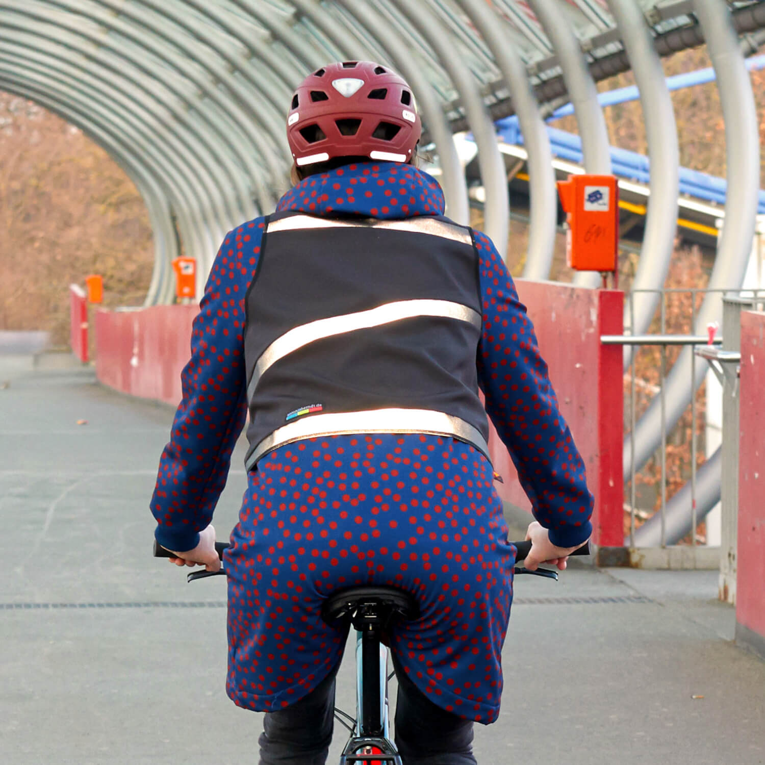The cyclist and tailor Antonia Berndt was looking for a nice bicycle safety vest for herself. And since she couldn't find one, she designed one that she liked and so the "Bunte Hund" was born.