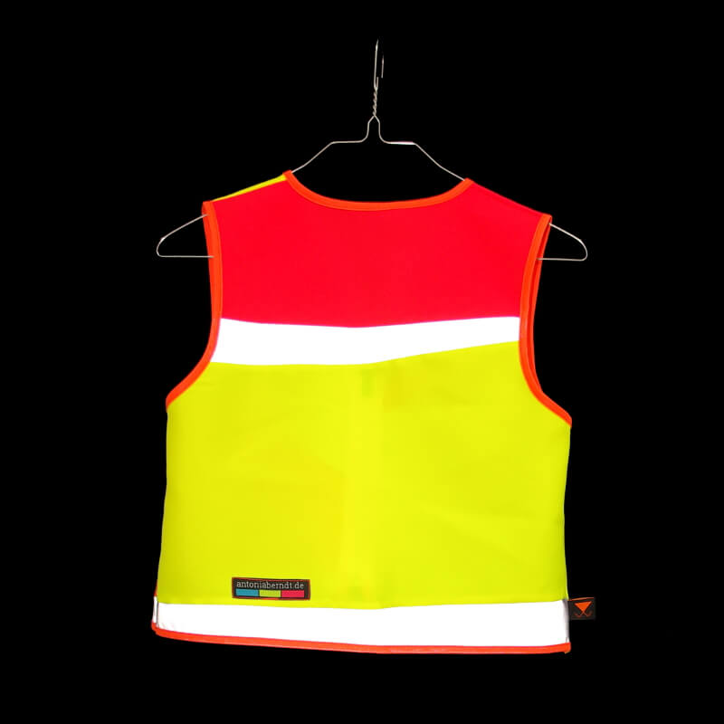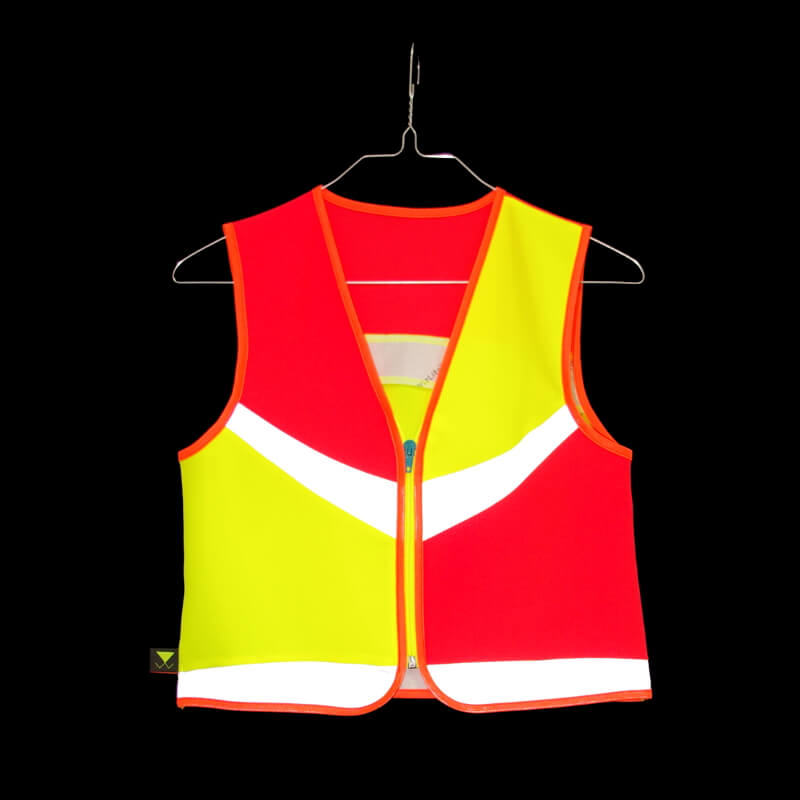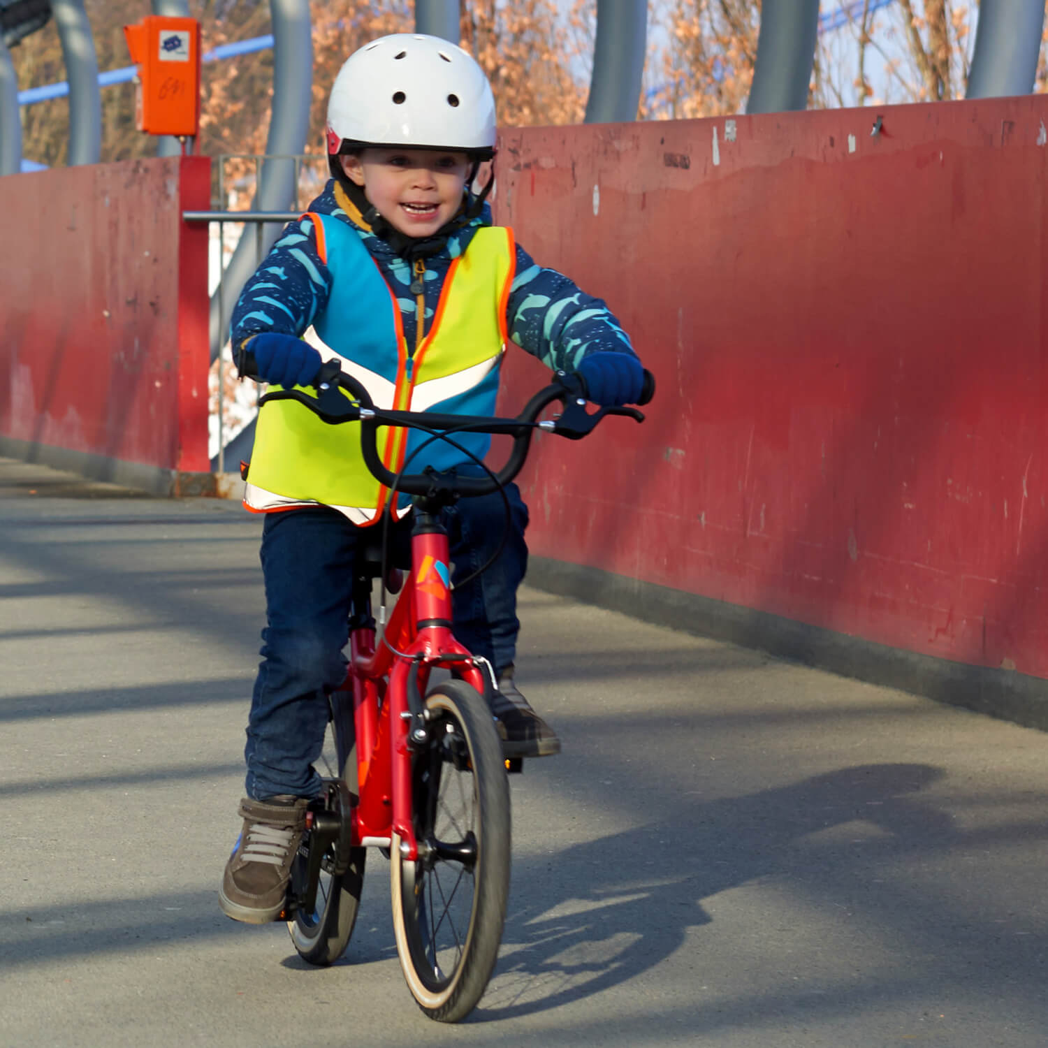 Que ce soit à vélo ou à pied, les couleurs vives et les éléments réfléchissants du gilet de sécurité « Chien Coloré » rendent votre enfant plus visible dans la circulation, de jour comme de nuit.